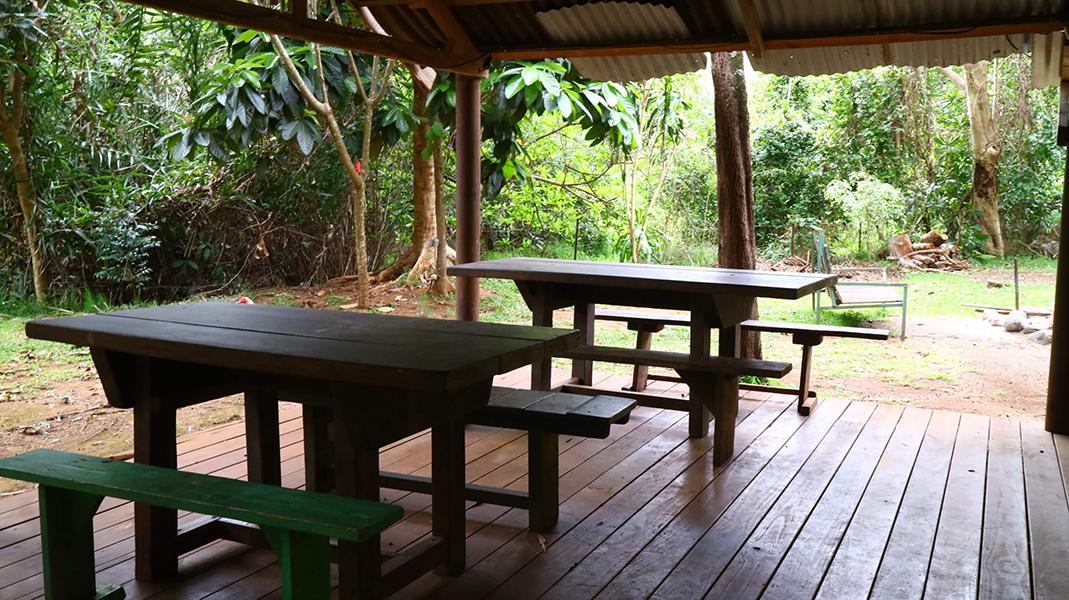 - Un grand faré de 50 M² avec tables, bancs, éclairage et prises électriques.